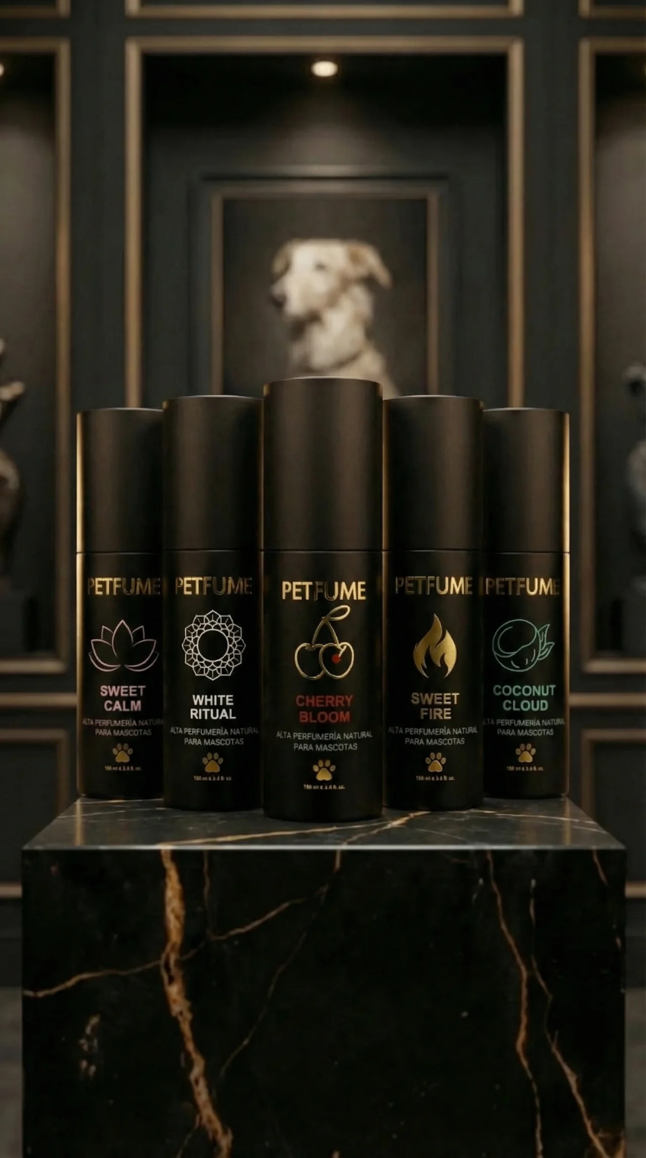 Incluye los 5 perfumes icónicos PETFUME en un elegante packaging premium, perfecto para probar, comparar y elegir tu fragancia favorita según el momento, el tipo de manto o la personalidad del animal.