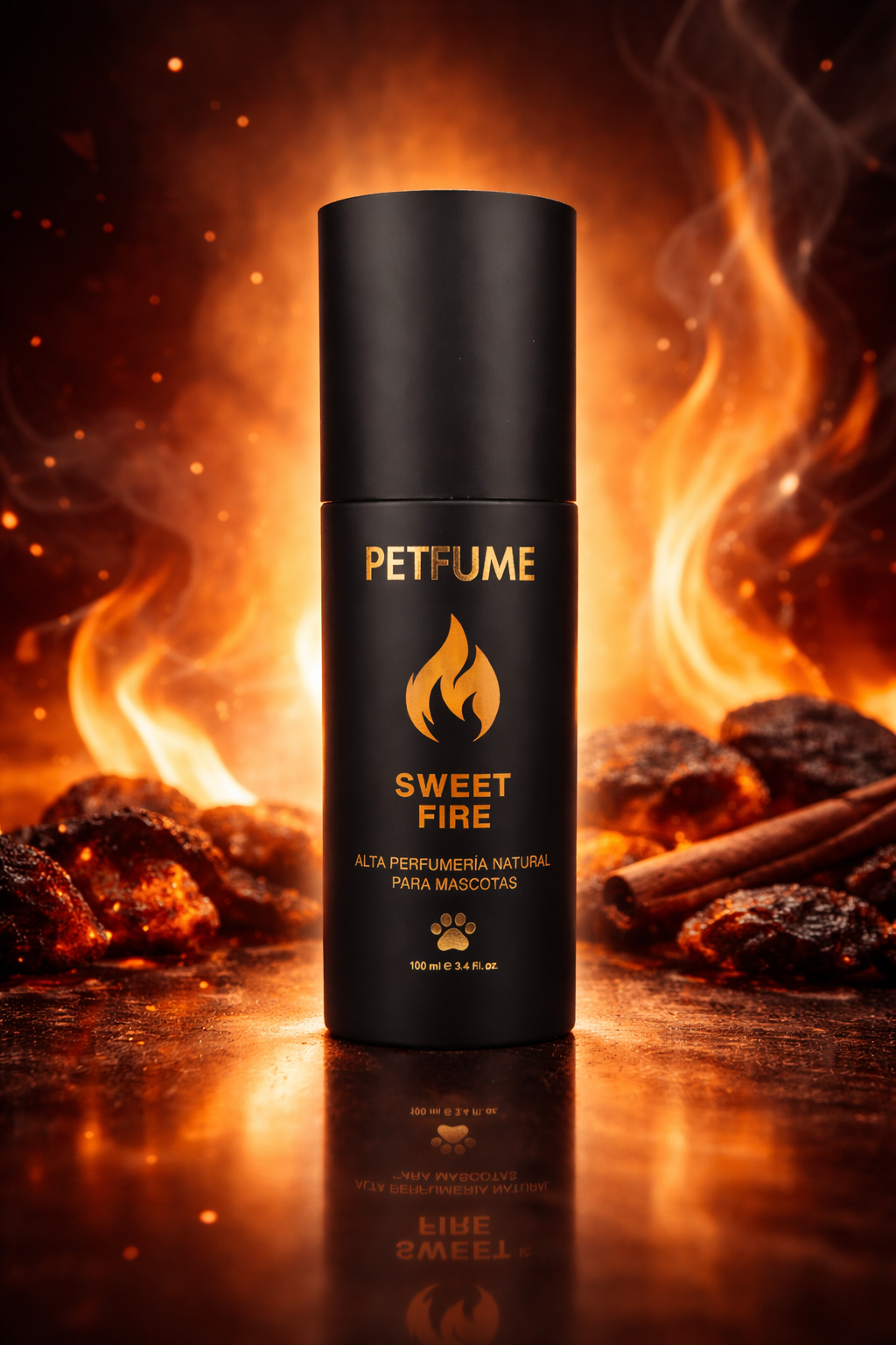 Aroma etéreo de rosa blanca, algodón y coco cremoso. Perfecto para animales blancos, cachorros y acabados premium. - SWEET FIRE – Cálido, profundo y sofisticado.